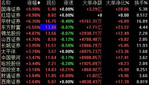 券商板塊今日全面爆發(fā),截至發(fā)稿,國海證券、紅塔證券漲停,華林證券、錦龍股份、山西證券等多只個漲超4%,太平洋、【中國銀河(601881)、股吧】、財通證券等多股跟漲。