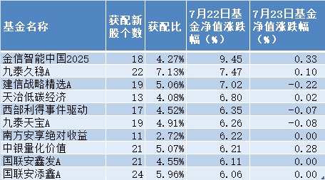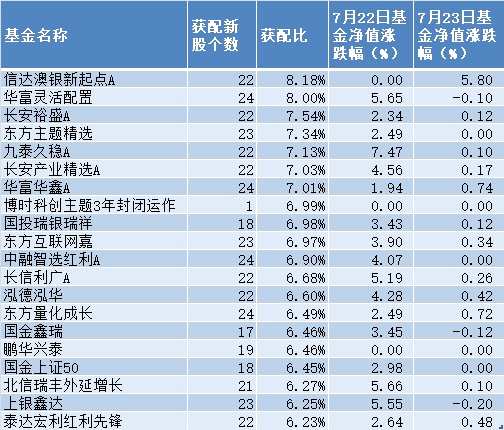 獲配比前20的基金情況(注:截至記者發(fā)稿時(shí),部分基金7月23日凈值尚未公布)