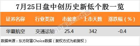 數(shù)據(jù)顯示,今日股盤中有1只個股股價(jià)創(chuàng)歷史新低,為華夏航空。