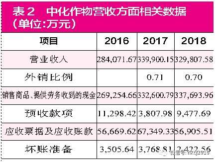 中化作物財報顯示,公司2017年、2018年的營業(yè)收入分別達(dá)到了339900.15萬元和329807.58萬元(見表2),其中國內(nèi)營收部分比例分別為71.13%和70.26%,考慮國內(nèi)營收需征增值稅,則推算出其含稅營收總收入分別大約為350694.36萬元和346796.27萬元。