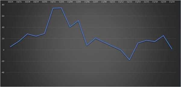 截至11月20日收盤,北向資金今日凈流入1.9億元,連續(xù)五日凈流入。其中,滬股通資金凈流出8.34億元,深股通資金凈流入10.24億元。