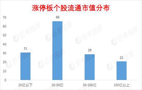 從流通市值的角度看,中小流通市值仍是出現(xiàn)漲停股數(shù)量最多的區(qū)域,并且今天這種現(xiàn)象還相對集中,今天50億以下流通市值的個股數(shù)量達到97家,其中只有31企業(yè)的流通市值在20億以下,流通市值在50-100億之間的個股數(shù)量今天出現(xiàn)29家,流通市值超百億的個股出現(xiàn)21家。