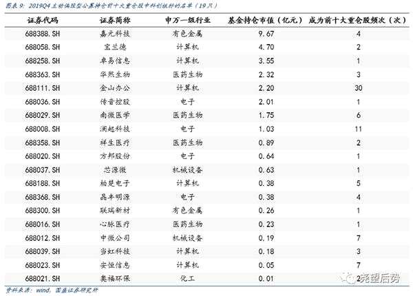 公募目光已經(jīng)投向科創(chuàng),國內(nèi)機構(gòu)搶籌正在逐步上演。科創(chuàng)板上市首個季度,公募基金目光即開始投向科創(chuàng)板,瀾起科技和【南微醫(yī)學(xué)(688029)、股吧】在2019Q3就已步入部分基金的前十大重倉行列,而最新的2019Q4公募基金持倉數(shù)據(jù)顯示,步入前十大重倉行列的科創(chuàng)板標的已經(jīng)擴展至19只,而且科創(chuàng)板持倉市值相較三季度已大幅提升,持倉占比自2019Q3的0.09%已經(jīng)擴大至2019Q4的0.44%。截至2019年底,已有281只公募基金前十大重倉股中涉及了科創(chuàng)板標的,國內(nèi)機構(gòu)對科創(chuàng)板標的的關(guān)注度正逐步提升,科創(chuàng)板塊的搶籌正在上演。