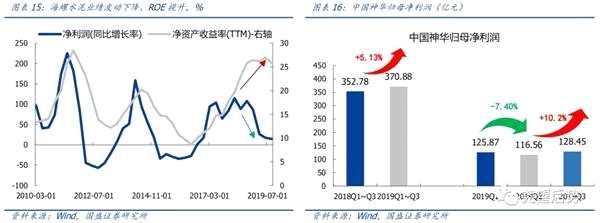 而以中國神華為代表的大多周期龍頭,估值尚未迎來修復(fù)。公司在煤炭、電力、鐵路、港口等領(lǐng)域皆為行業(yè)翹楚,具有極強競爭力。受益于“煤電化路港航”全產(chǎn)業(yè)鏈的協(xié)同效應(yīng)和縱向一體化優(yōu)勢,即使在煤價下行周期中,業(yè)績底部依然明確,19Q3單季凈利潤創(chuàng)近 6 年新高,抵御風(fēng)險能力強勁。公司充?,F(xiàn)金流、低估值、高分紅,但估值仍處低位。未來類似中國神華的周期龍頭也或迎來估值的“撥亂反正”。