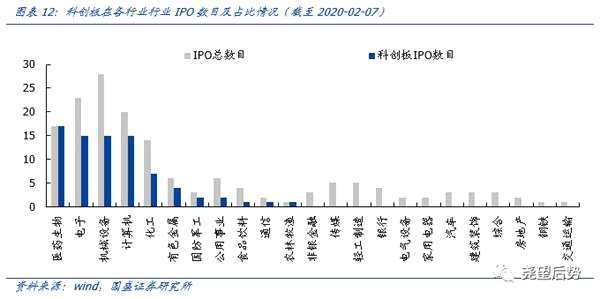 聚焦科技創(chuàng)新,科創(chuàng)板正在快速崛起。自2019年7月22日,首批科創(chuàng)板公司成功上市以來,科創(chuàng)板IPO占比持續(xù)攀升。截至2020年2月7日,科創(chuàng)板IPO企業(yè)數(shù)目占比已突破了50%,科創(chuàng)板正在成為我國上市公司增量的“主力軍”。從行業(yè)分布來看,科創(chuàng)板企業(yè)集中分布于電子、機械設(shè)備、計算機和醫(yī)藥生物,前4大行業(yè)占比達到78%,而且此類行業(yè)的公司IPO也基本集中于科創(chuàng)板,其中醫(yī)藥生物公司IPO自7月22日以來已全部選擇登陸科創(chuàng)板,另外3個行業(yè)科創(chuàng)板占比也均達到50%以上。未來,電子、機械設(shè)備、計算機和醫(yī)藥生物等行業(yè)的科創(chuàng)新秀有望云集于此,科創(chuàng)板將成為此類行業(yè)投資的重要戰(zhàn)場。