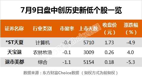 數(shù)據(jù)顯示,今日盤中有3只個股股價創(chuàng)歷史新低,為退市美都等。