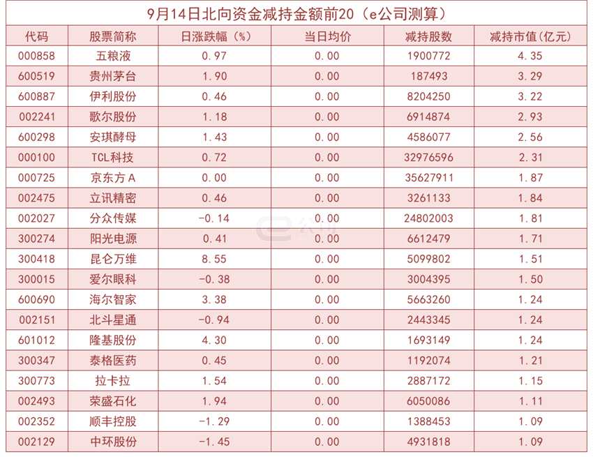 統(tǒng)計(jì)數(shù)據(jù)顯示,9月14日北向資金合計(jì)凈流出31.44億元。其中滬股通凈流出26.84億元,深股通凈流出4.60億元。北向資金成交金額達(dá)到875.40億元,占A股當(dāng)日總成交金額比重為11.38%。