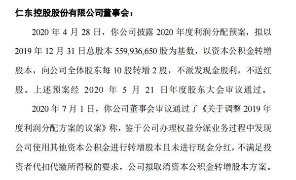 除了“曾”概念的警示函和監(jiān)管函外,8月3日,仁東控股還收到了深交所發(fā)出的取消轉(zhuǎn)股計(jì)劃的監(jiān)管函。