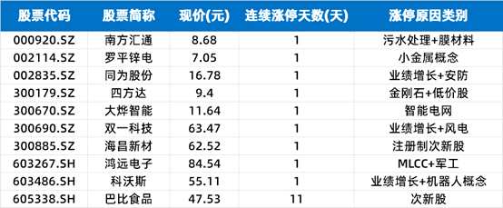 在其他概念板塊中,風(fēng)電、注冊(cè)制次新、軍工、安防設(shè)備等均有零星個(gè)股漲停。