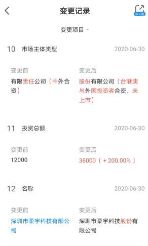 雖然并未證實(shí),但柔宇科技的回A跡象仍十分明顯。天眼查信息顯示,2020年6月30日,柔宇科技的全程由“深圳市柔宇科技有限公司”變更為“深圳市柔宇科技股份有限公司”,注冊(cè)資本自1.2億元增至3.6億元,市場(chǎng)主體類型由有限責(zé)任公司變更為股份有限公司。股份制改造的完成,或許是柔宇科技沖擊A股的一個(gè)信號(hào)。