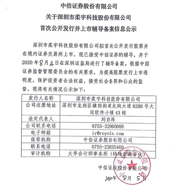 根據(jù)深圳證監(jiān)局公布的輔導(dǎo)備案信息,柔宇科技擬首次公開(kāi)發(fā)行股票并在境內(nèi)證券交易所上市,接受中信證券的輔導(dǎo),并于今年8月4日進(jìn)行輔導(dǎo)備案。除了保薦機(jī)構(gòu)為中信證券外,柔宇科技選擇的審計(jì)機(jī)構(gòu)為大華會(huì)計(jì)師事務(wù)所。今年9月底,中信證券披露了柔宇科技首發(fā)上市輔導(dǎo)工作的第二期進(jìn)展報(bào)告,目前未有更新進(jìn)展。