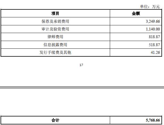 新益昌本次上市發(fā)行費(fèi)用為5768.66萬元,其中保薦機(jī)構(gòu)中泰證券股份有限公司獲得保薦及承銷費(fèi)用3249.66萬元,天健會(huì)計(jì)師事務(wù)所(特殊普通合伙)獲得審計(jì)及驗(yàn)資費(fèi)用1140.00萬元,廣東信達(dá)律師事務(wù)所獲得律師費(fèi)用818.87萬元。