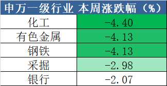 跌幅榜上,本周跌幅前五的板塊分別是化工、有色金屬、鋼鐵、采掘和銀行。具體來(lái)看,化工板塊的下跌主要是新熱點(diǎn)出現(xiàn),以及“能耗”雙控的政策所影響,部分持倉(cāng)資金選擇獲利了結(jié)。