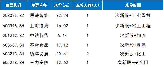 近期次新股表現(xiàn)偏弱,板塊指數(shù)已連續(xù)4連陰,但今日板塊內(nèi)部有了些許新變化。前期走強的近段次新股鎮(zhèn)洋發(fā)展(603213.SH)今日再度漲停,收獲2連板,后排的【王力安防(605268)、股吧】(605268.SH)、上海港灣(605598.SH)等紛紛漲停;這些個股形態(tài)上整體處于相對超跌狀態(tài),一定程度上也反應(yīng)出了當下市場資金整體偏謹慎,更青睞相對低位個股。