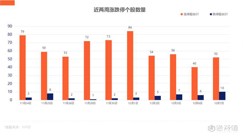 1)滬深兩市漲跌比0.62左右,較上一交易日小幅回暖;漲幅大于7%的個股依舊不足百家,首板40家,連板8家,賺錢效應(yīng)較上一交易日有所回升。