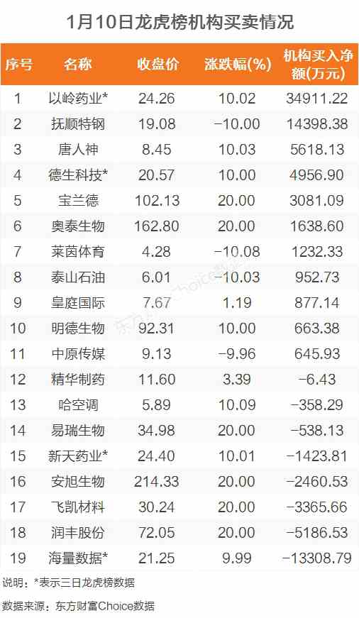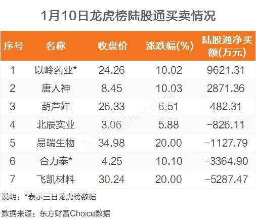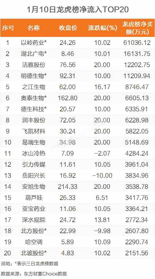 1月10日,上榜龍虎榜個(gè)股中,資金凈流入最多的是以嶺藥業(yè),三日凈流入6.1億元。數(shù)據(jù)顯示,該股日內(nèi)漲停收盤,近三日累漲24.09%。資金凈流入居前的深股通席位三日凈買入9621.31萬元。