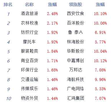A股市場板塊及個股漲跌幅排行
