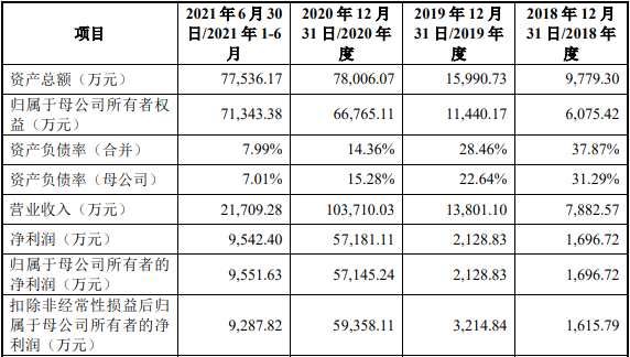 2018年、2019年、2020年、2021年1-6月,英諾特的營業(yè)收入分別為7882.57萬元、1.38億元、10.37億元、2.17億元;歸屬于母公司所有者的凈利潤分別為1696.72萬元、2128.83萬元、5.71億元、9551.63萬元;扣除非經(jīng)常性損益后歸屬于母公司所有者的凈利潤分別為1615.79萬元、3214.84萬元、5.94億元、9287.82萬元。