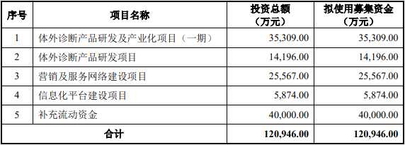 英諾特?cái)M募集資金12.09億元,其中3.53億元用于體外診斷產(chǎn)品研發(fā)及產(chǎn)業(yè)化項(xiàng)目(一期),1.42億元用于體外診斷產(chǎn)品研發(fā)項(xiàng)目,2.56億元用于營銷及服務(wù)網(wǎng)絡(luò)建設(shè)項(xiàng)目,5874.00萬元用于信息化平臺(tái)建設(shè)項(xiàng)目,4.00億元用于補(bǔ)充流動(dòng)資金。