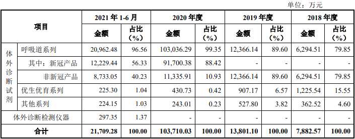 新冠檢測產(chǎn)品占2020年主營業(yè)務(wù)收入88% 銷售收入逐步下滑