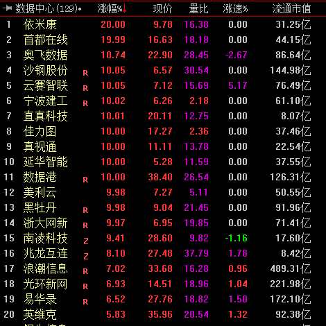 2月18日早盤,依米康、首都在線、佳力圖、【真視通(002771)、股吧】、美利云等超10股漲停,光環(huán)新網(wǎng)、易華錄、浪潮信息等亦大幅飆漲。