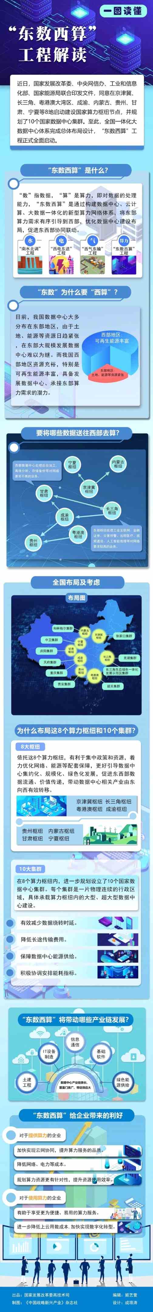 國家發(fā)展改革委、中央網(wǎng)信辦、工業(yè)和信息化部、國家能源局近日聯(lián)合印發(fā)文件,同意在京津冀、長三角、粵港澳大灣區(qū)、成渝、內(nèi)蒙古、貴州、甘肅、寧夏啟動建設(shè)國家算力樞紐節(jié)點,并規(guī)劃了張家口集群等10個國家數(shù)據(jù)中心集群。至此,全國一體化大數(shù)據(jù)中心體系完成總體布局設(shè)計,“東數(shù)西算”工程正式全面啟動。