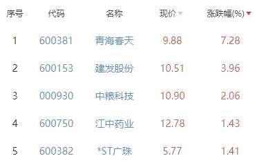 其中,青海春天、建發(fā)股份、中糧科技、江中藥業(yè)、*ST廣珠位列板塊漲幅前五位,漲幅分別為7.28%、3.96%、2.06%、1.43%、1.41%。