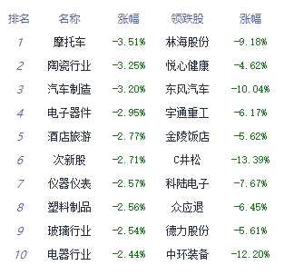 A股市場板塊及個股漲跌幅排行