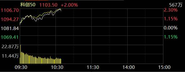 科創(chuàng)50指數(shù)漲幅擴大至2%