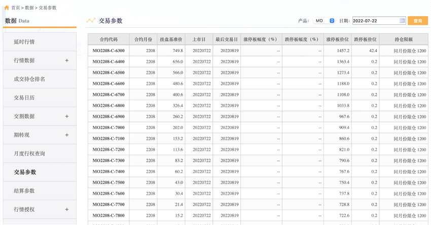 中證1000股指期權(quán)MO2208月份合約、MO2209月份合約、MO2212月份合約、MO2303月份合約、MO2306月份合約同日上市交易,中證1000股指期權(quán)合約的掛盤基準(zhǔn)價,可通過中金所網(wǎng)站“數(shù)據(jù)”欄目查詢。