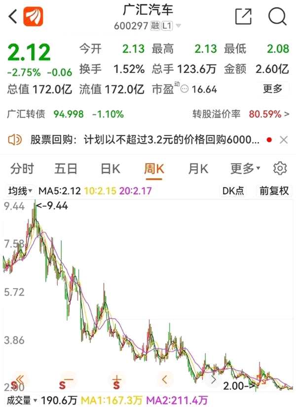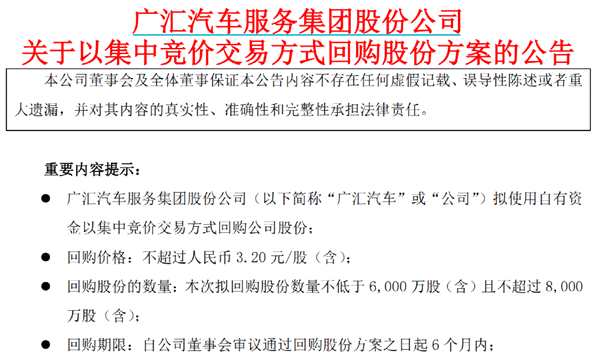 為了實施此次計劃,廣匯汽車宣布,以集中競價交易方式回購股份數(shù)量不低于6000萬股且不超過8000萬股。此次回購價格不超過3.20元/股,回購期限自公司董事會審議通過回購股份方案之日起6個月內(nèi)。截至1月31日收盤,廣匯汽車股價為2.12元/股。換言之,廣匯汽車回購股份價格較當前股價溢價50.94%。