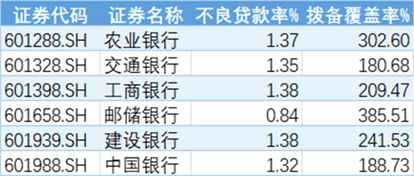根據(jù)統(tǒng)計(jì),國(guó)有六大行中郵儲(chǔ)的不良貸款率最低,僅有0.84%,它也是唯一不良貸款率低于1%的大行,同時(shí)該行的撥備覆蓋率也超過(guò)380%,比大行以及板塊均值都要高。與此同時(shí),中行和交行的撥備覆蓋率則低于200%。