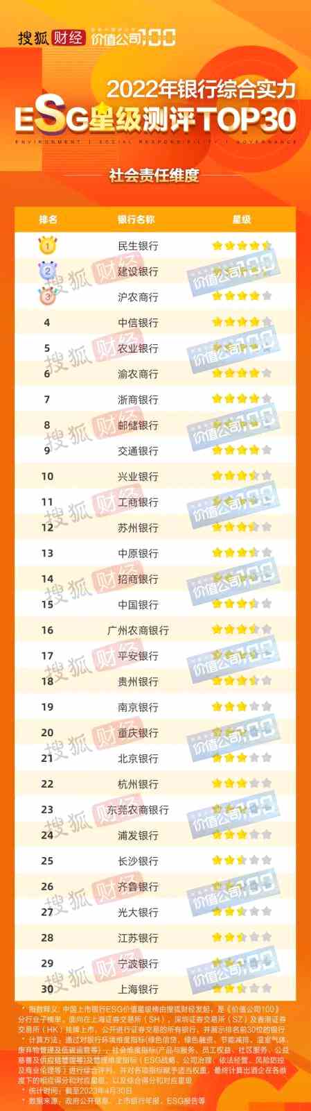 今年內(nèi),民生銀行已獲多項(xiàng)ESG榮譽(yù)。5月,搜狐財(cái)經(jīng)發(fā)布“中國(guó)上市銀行ESG星級(jí)榜”,民生銀行在中國(guó)上市銀行ESG星級(jí)測(cè)評(píng)中,社會(huì)責(zé)任維度排名第1。
