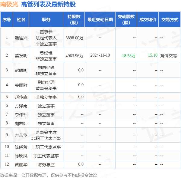 南極光的高管列表及最新持股情況如下: