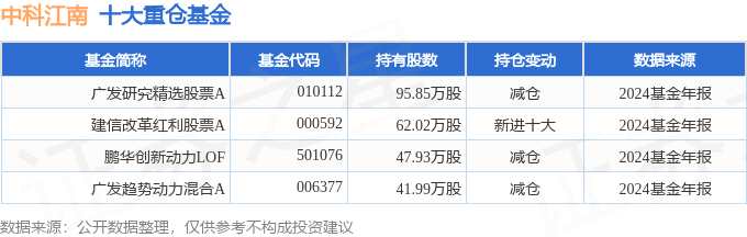 持有中科江南最多的基金為廣發(fā)研究精選股票A,目前規(guī)模為9.17億元,最新凈值0.4928(3月28日),較上一交易日下跌0.59%,近一年上漲2.78%。該基金現(xiàn)任基金經(jīng)理為蔣科。