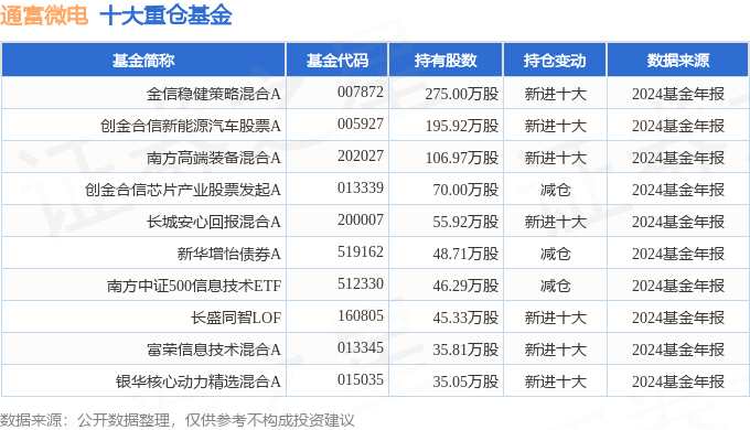 持有通富微電最多的基金為金信穩(wěn)健策略混合A,目前規(guī)模為15.61億元,最新凈值1.4883(4月11日),較上一交易日上漲2.73%,近一年上漲33.26%。該基金現(xiàn)任基金經(jīng)理為孔學(xué)兵。