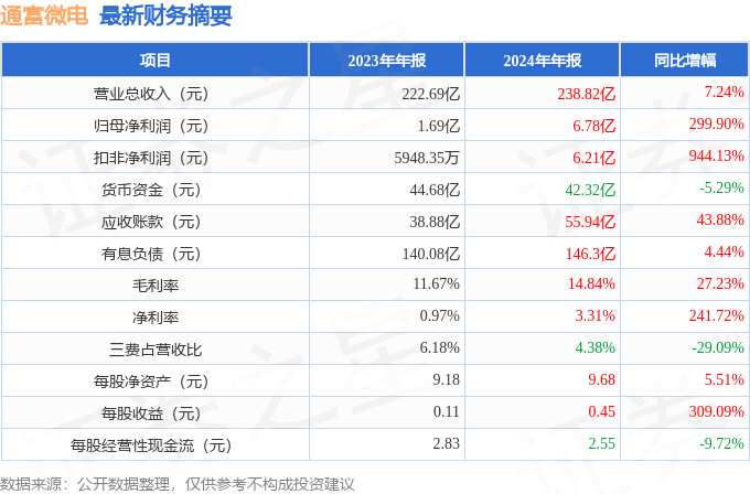 通富微電(002156)2024年年報簡析:營收凈利潤同比雙雙增長,應(yīng)收賬款…