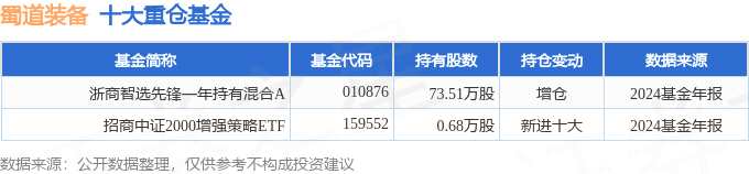 持有蜀道裝備最多的基金為浙商智選先鋒一年持有混合A,目前規(guī)模為1.76億元,最新凈值0.5077(4月17日),較上一交易日上漲0.06%,近一年下跌2.63%。該基金現(xiàn)任基金經(jīng)理為平舒宇。