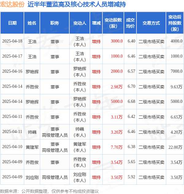 宏達(dá)股份的高管列表及最新持股情況如下: