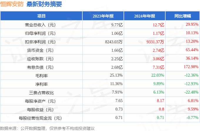 恒輝安防(300952)2024年年報簡析:營收凈利潤同比雙雙增長,應(yīng)收賬款…