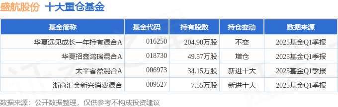 持有盛航股份最多的基金為華夏遠見成長一年持有混合A,目前規(guī)模為6.36億元,最新凈值0.9028(4月25日),較上一交易日上漲0.55%,近一年上漲32.07%。該基金現任基金經理為鐘帥。