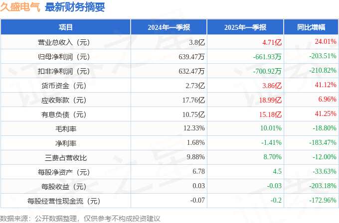 久盛電氣(301082)2025年一季報(bào)簡(jiǎn)析:增收不增利,公司應(yīng)收賬款體量較大