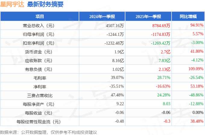 星網宇達(002829)2025年一季報簡析:營收上升虧損收窄,公司應收賬款…