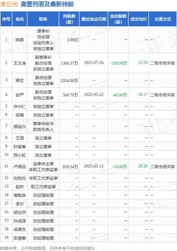 凌云光的高管列表及最新持股情況如下:
