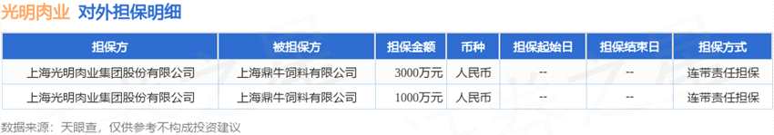 光明肉業(yè)披露2筆對外擔(dān)保,被擔(dān)保方為上海鼎牛飼料有限公司