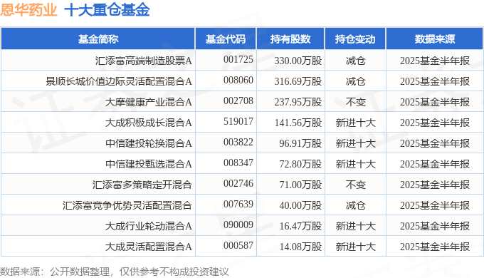 持有恩華藥業(yè)最多的基金為匯添富高端制造股票A,目前規(guī)模為13.38億元,最新凈值2.408(7月30日),較上一交易日上漲0.0%,近一年上漲11.07%。該基金現(xiàn)任基金經(jīng)理為趙鵬飛。