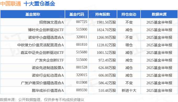 持有中國聯(lián)通最多的基金為招商瑞文混合A,目前規(guī)模為27.49億元,最新凈值1.2849(8月13日),較上一交易日上漲0.17%,近一年上漲9.13%。該基金現(xiàn)任基金經(jīng)理為余芽芳 吳瀟。