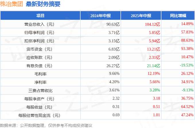 摘要: 據(jù)公開數(shù)據(jù)整理,近期株冶集團(tuán)(600961)發(fā)布2025年中報(bào)。截至本報(bào)告期末,公司營(yíng)業(yè)總收入104.12億元,同比上升14.89%,歸母凈利潤(rùn)5.85億元,同比上升57.83%。
