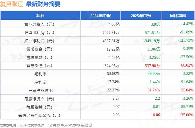 復(fù)旦張江(688505)2025年中報(bào)簡(jiǎn)析:凈利潤(rùn)減91.89%,三費(fèi)占比上…