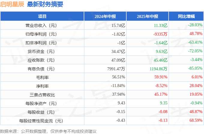 摘要: 據(jù)公開數(shù)據(jù)整理,近期啟明星辰(002439)發(fā)布2025年中報(bào)。截至本報(bào)告期末,公司營(yíng)業(yè)總收入11.33億元,同比下降28.03%,歸母凈利潤(rùn)-9335.0萬元,同比上升48.78%。